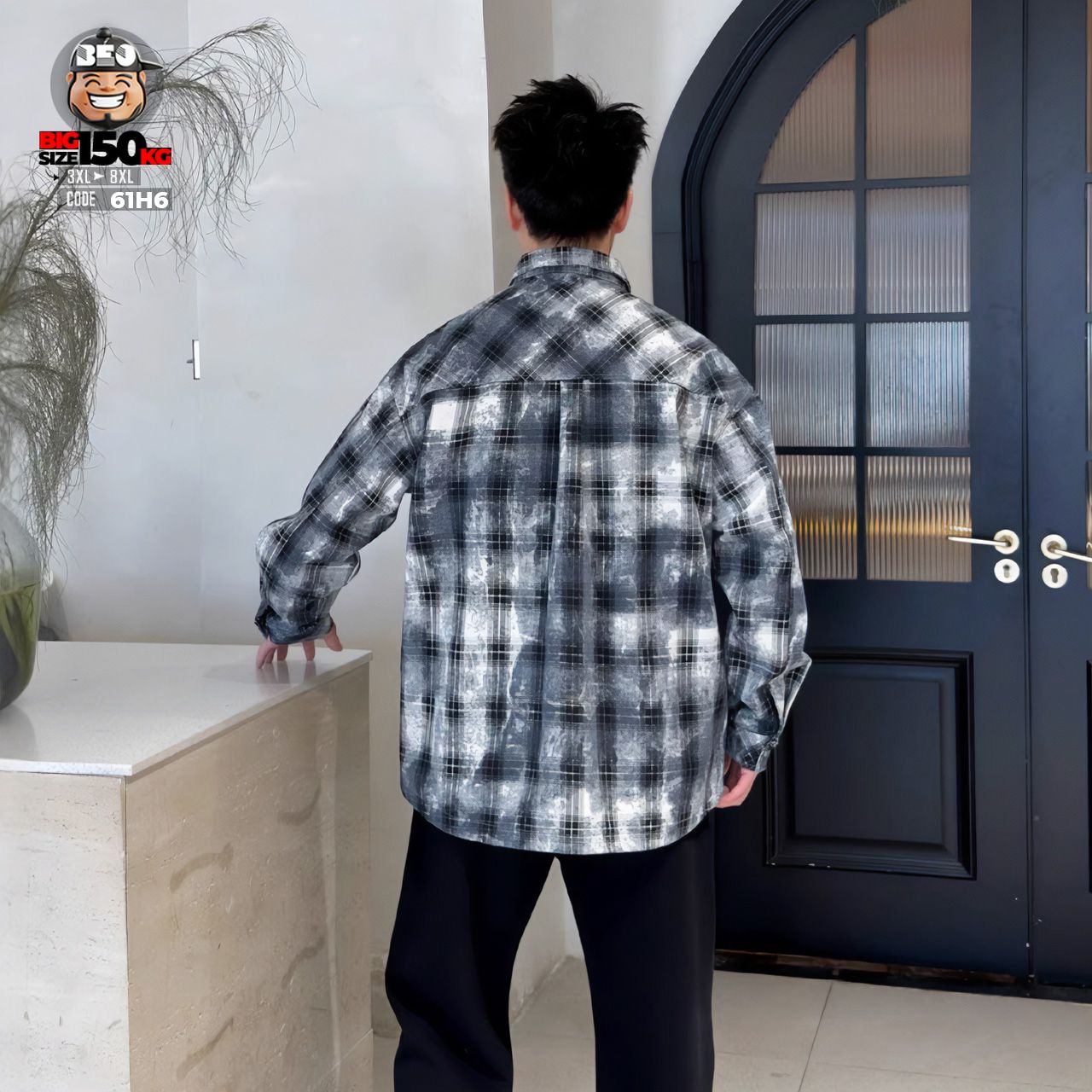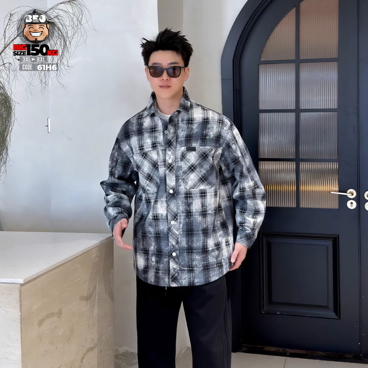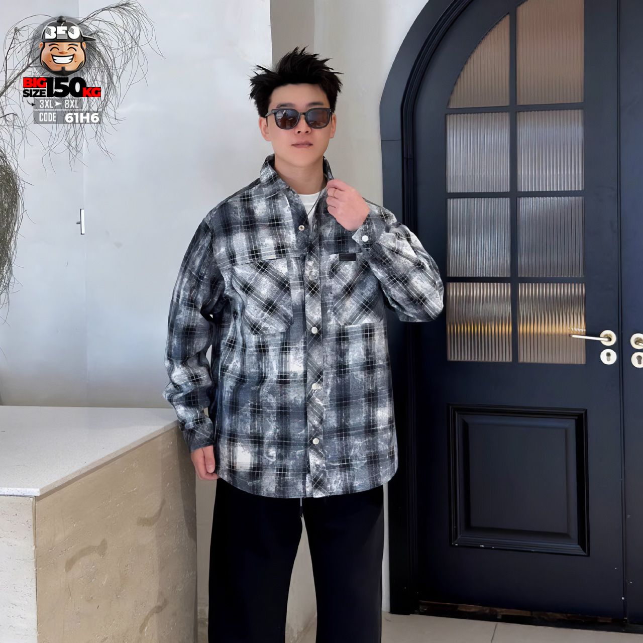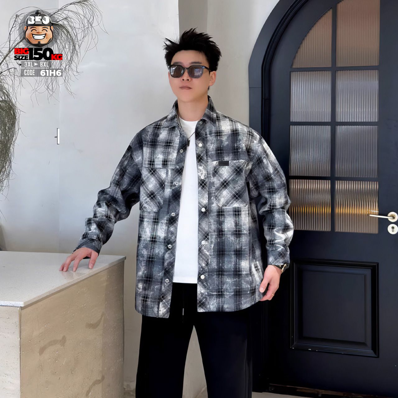 Áo khoác sơ mi họa tiết caro phối túi kiểu cá tính
