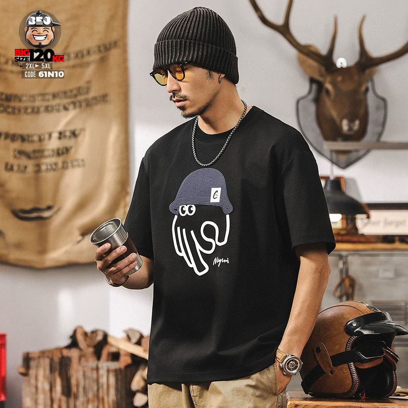 Áo thun tay ngắn cách điệu con bạch tuột hand đeo nón cá tính