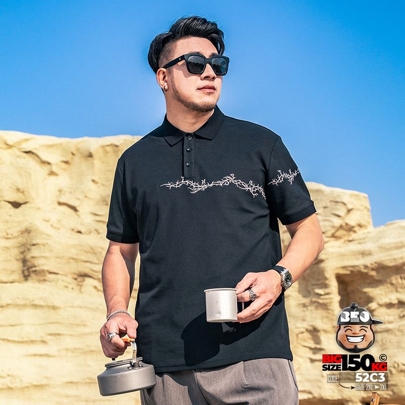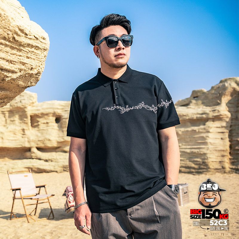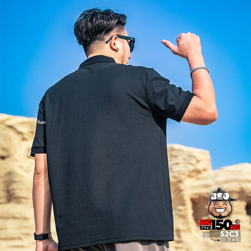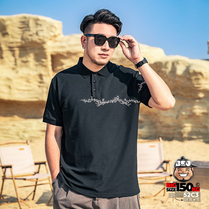 Áo thun tay ngắn Polo họa tiết thêu cành ngang ngực cá tính