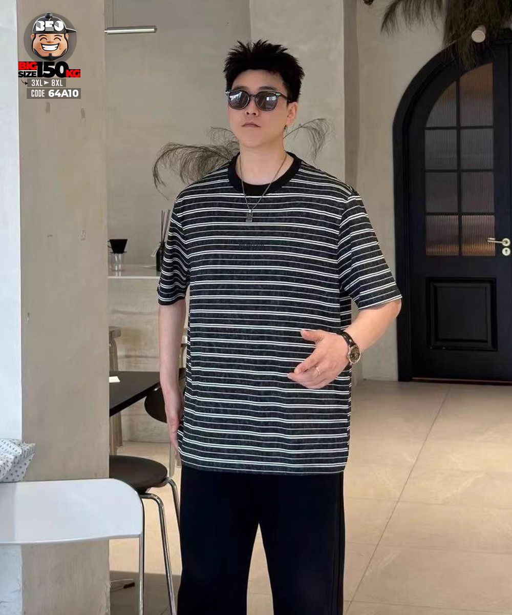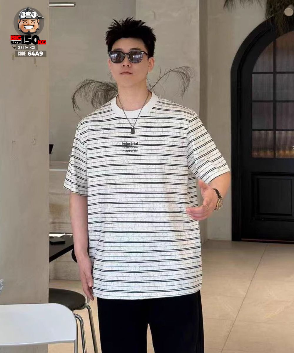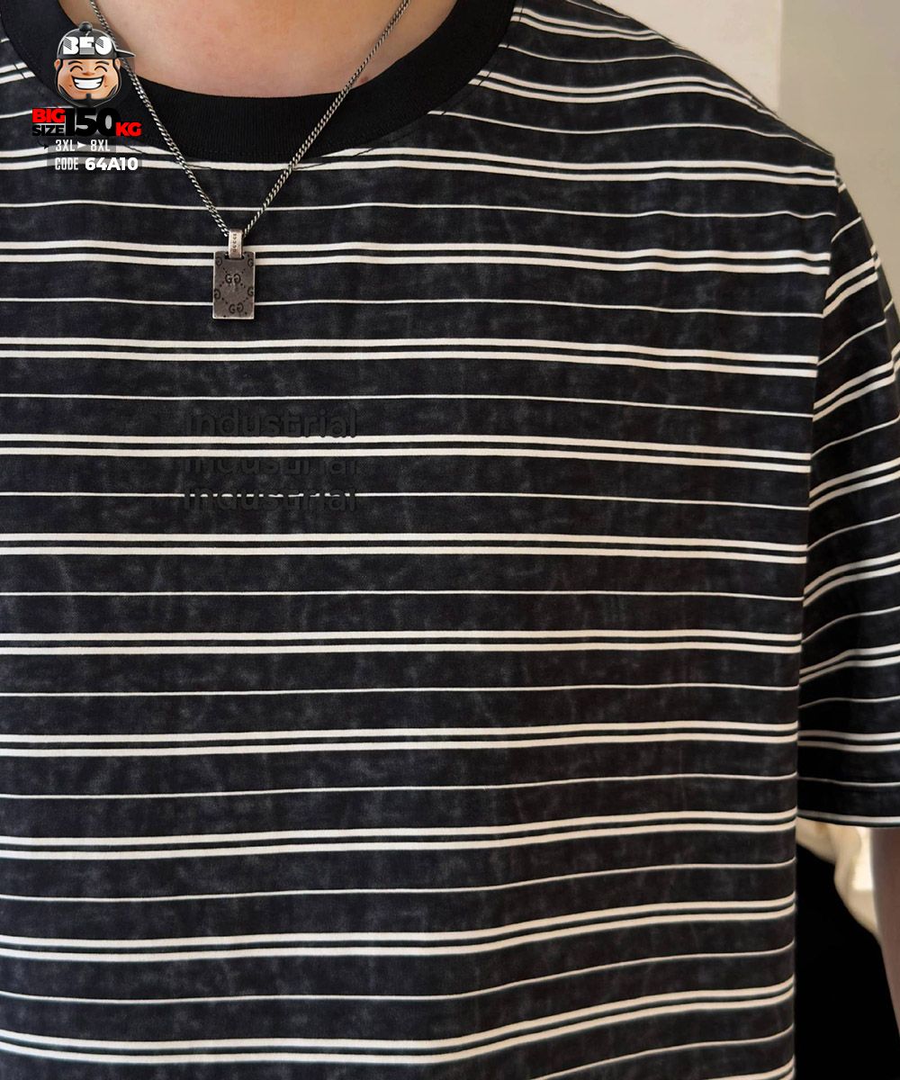 Áo thun tay ngắn sọc ngang industrial text