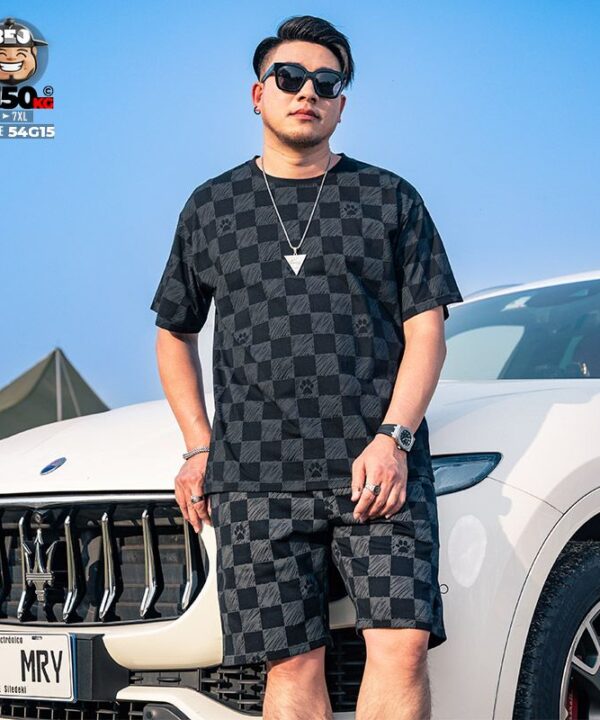 Đồ bộ ngắn thun cotton dog foot pattern with caro street art 7