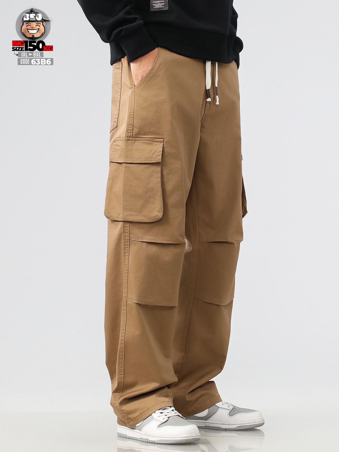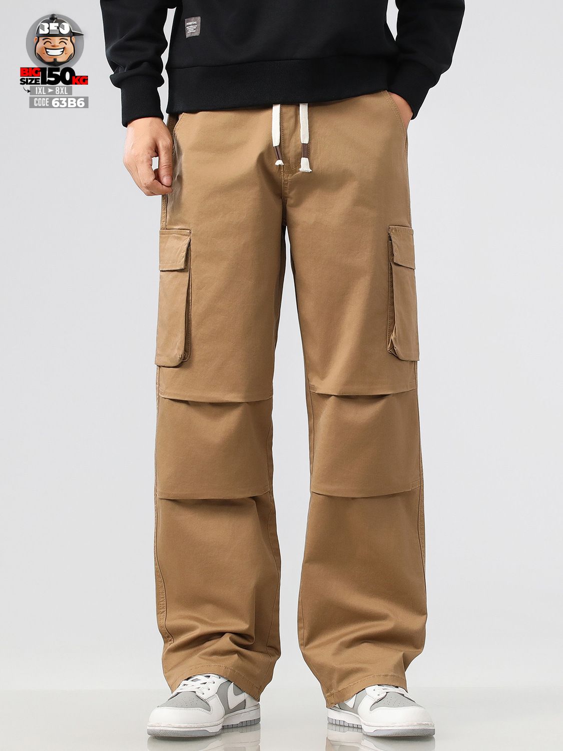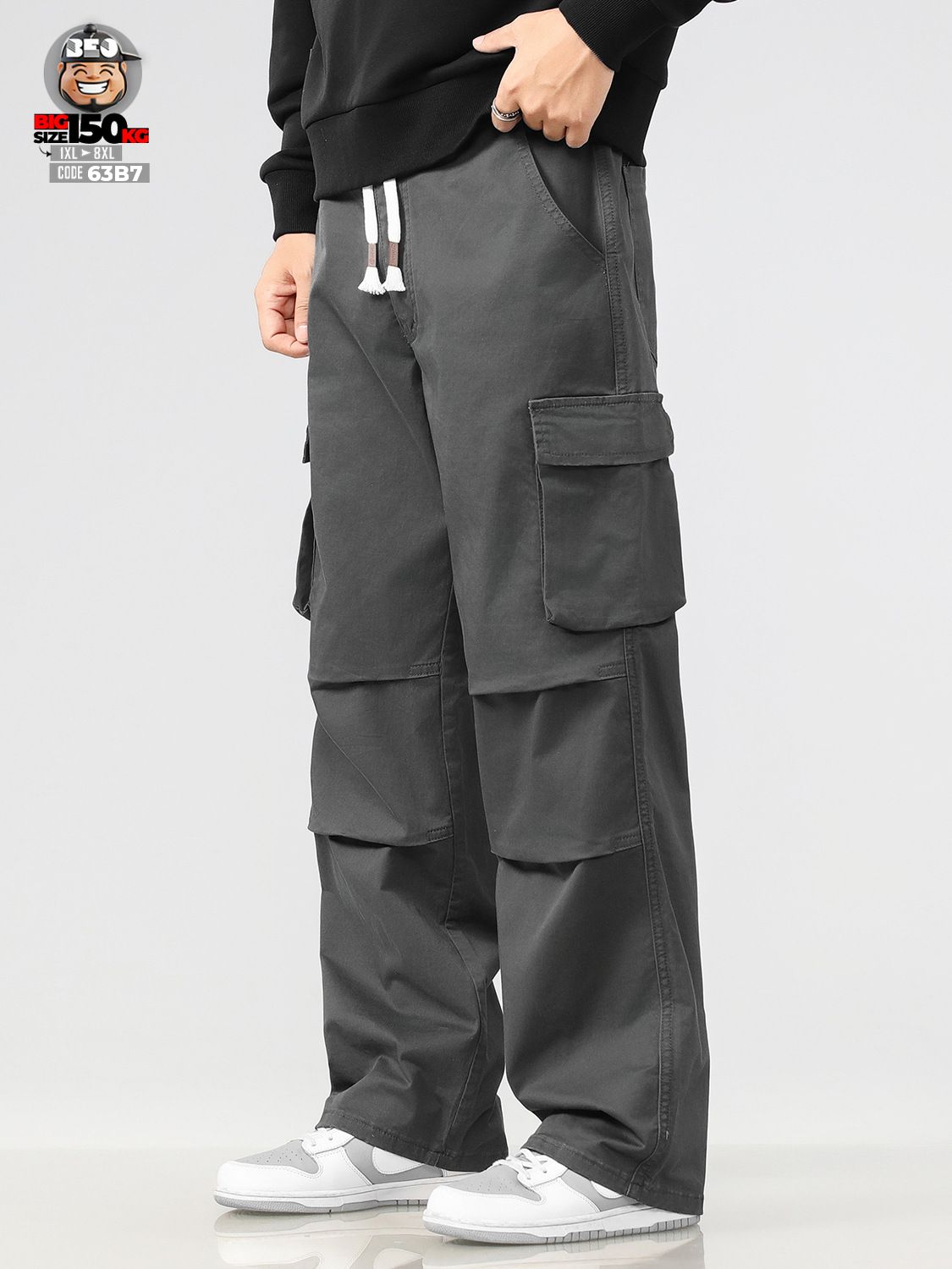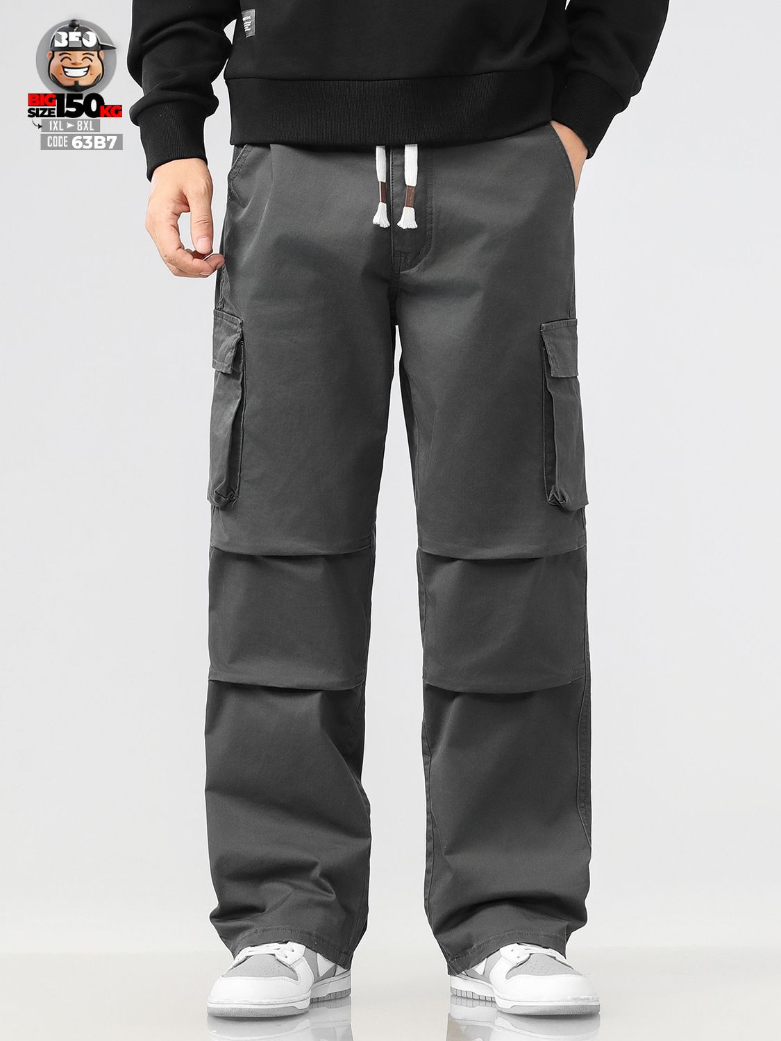 Quần dài cargo túi hộp ống suông form rộng ống dài phong cách lính dù gấp nếp