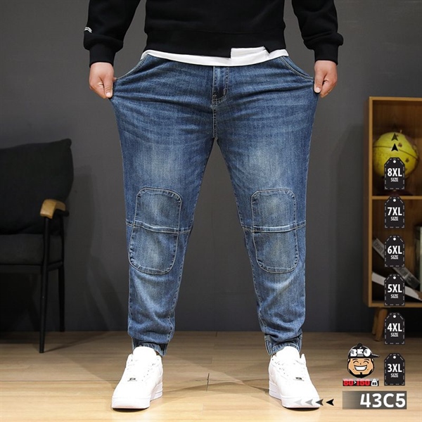 Quần dài jean jogger họa tiết vải ráp ở đầu gối kèm ống quần design