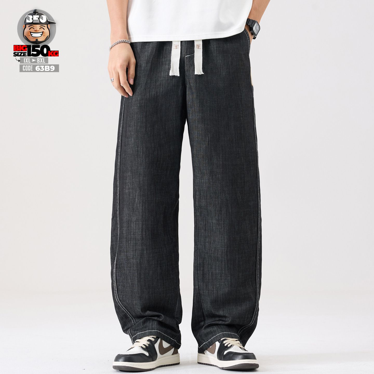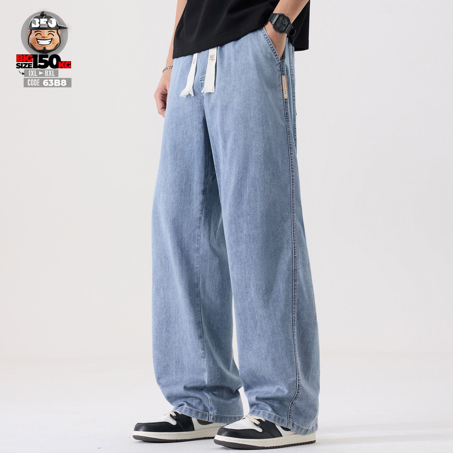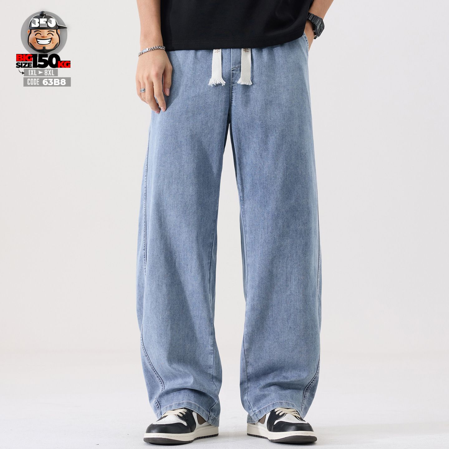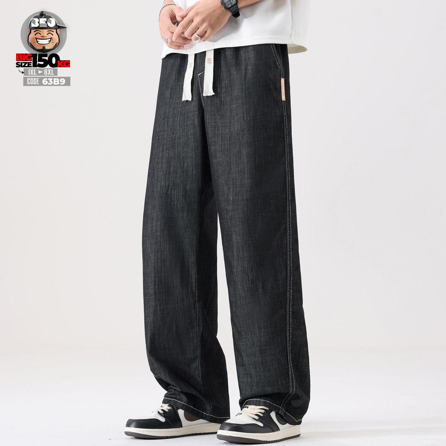 Quần dài jean Lyocell lưng thun form cong ống suông co giãn vải mỏng