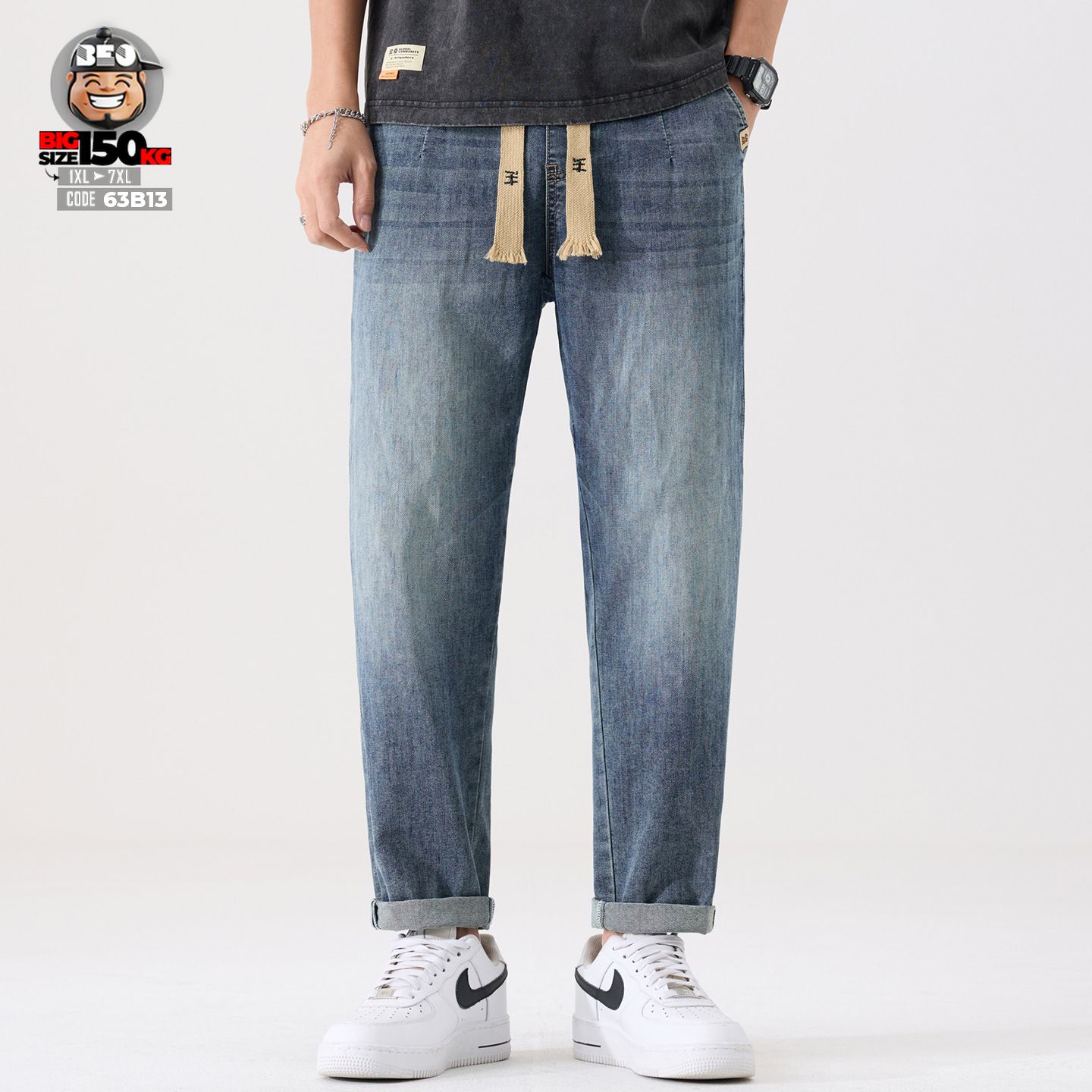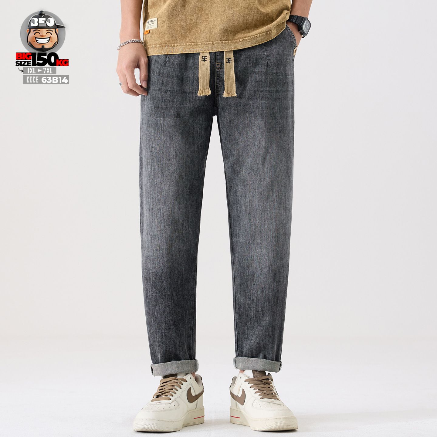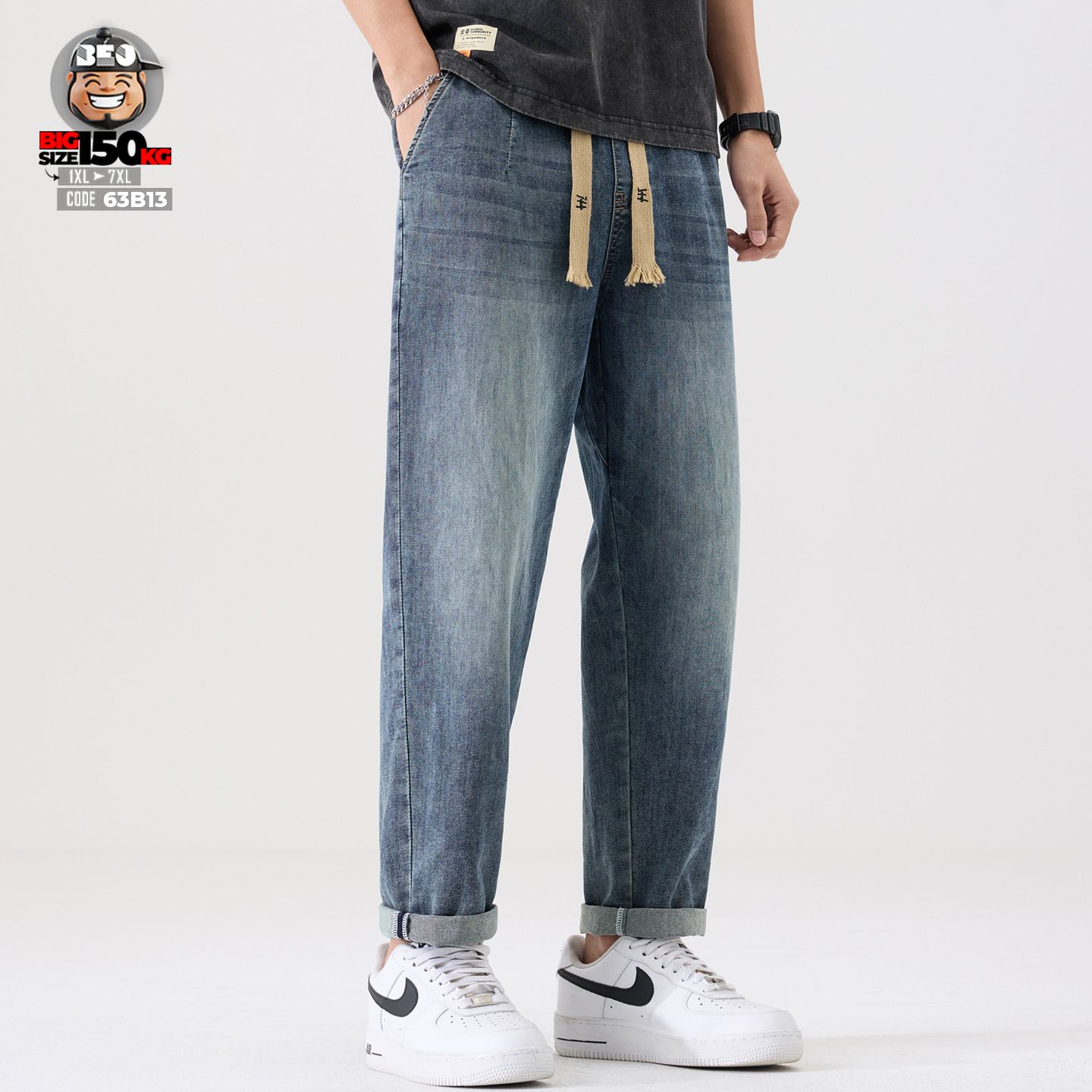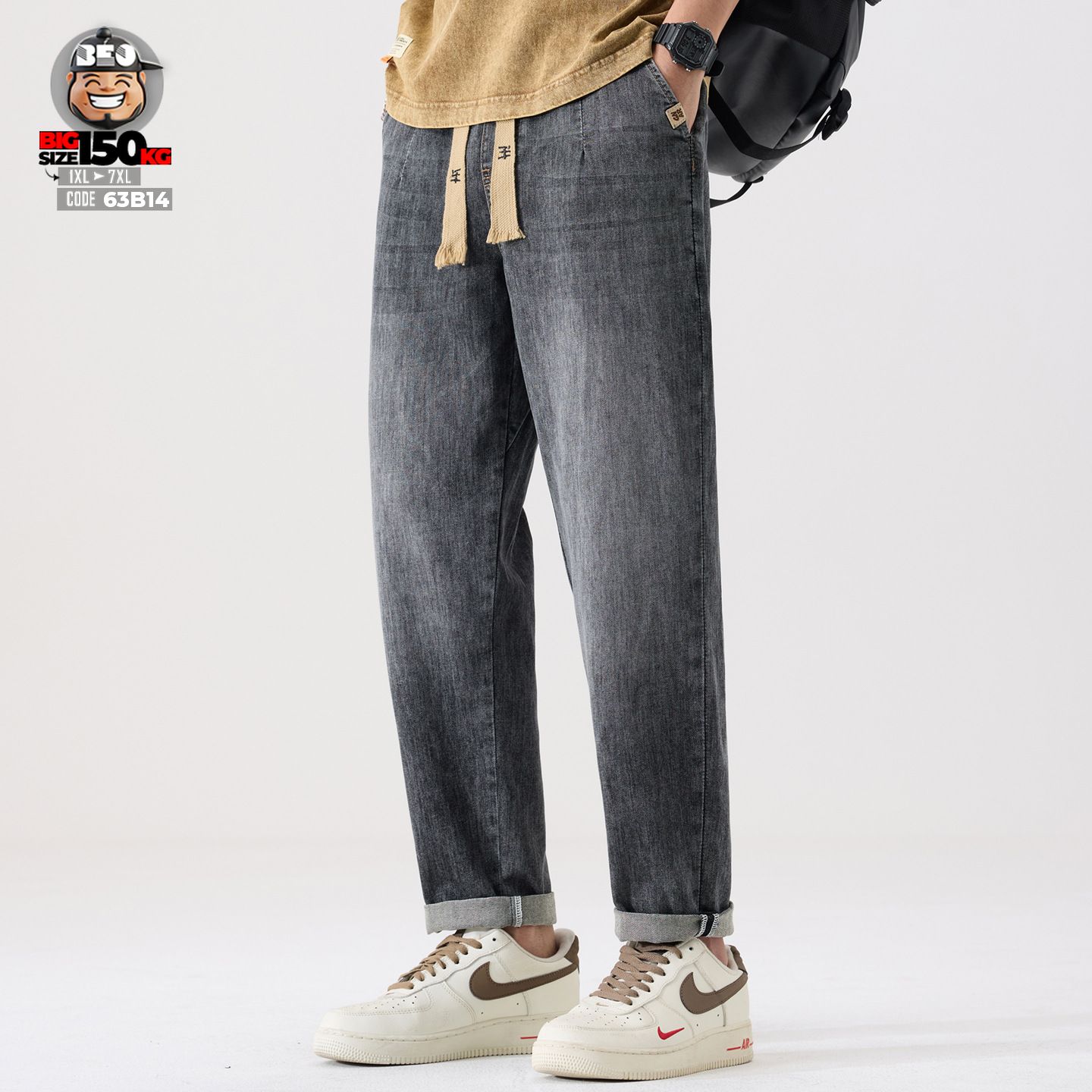 Quần dài jean Lyocell lưng thun mỏng mát form rộng ống côn co giãn