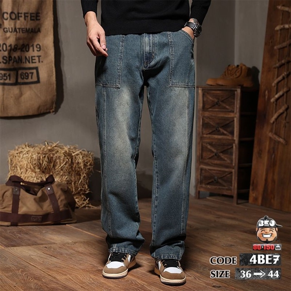 Quần dài jean thun ống suông kiểu túi vuông kể chỉ