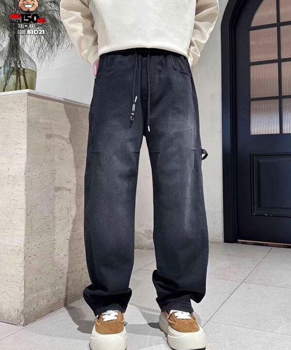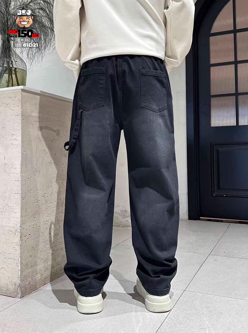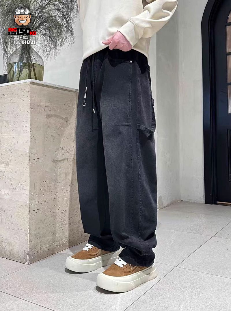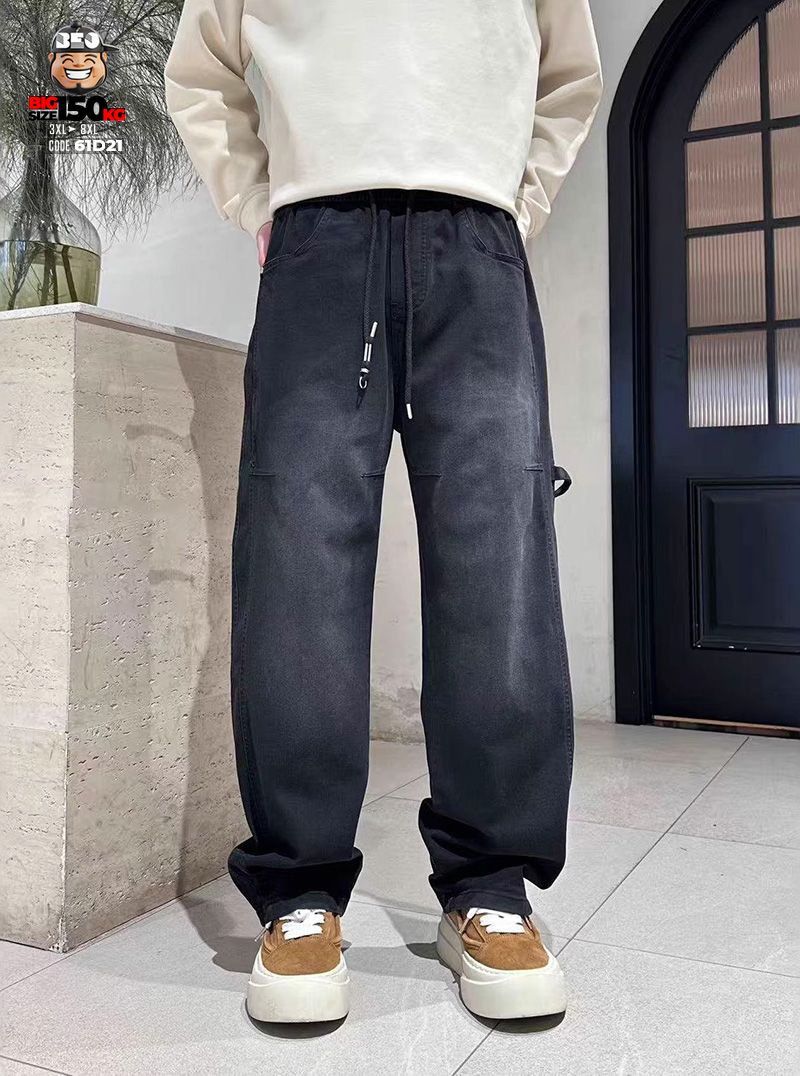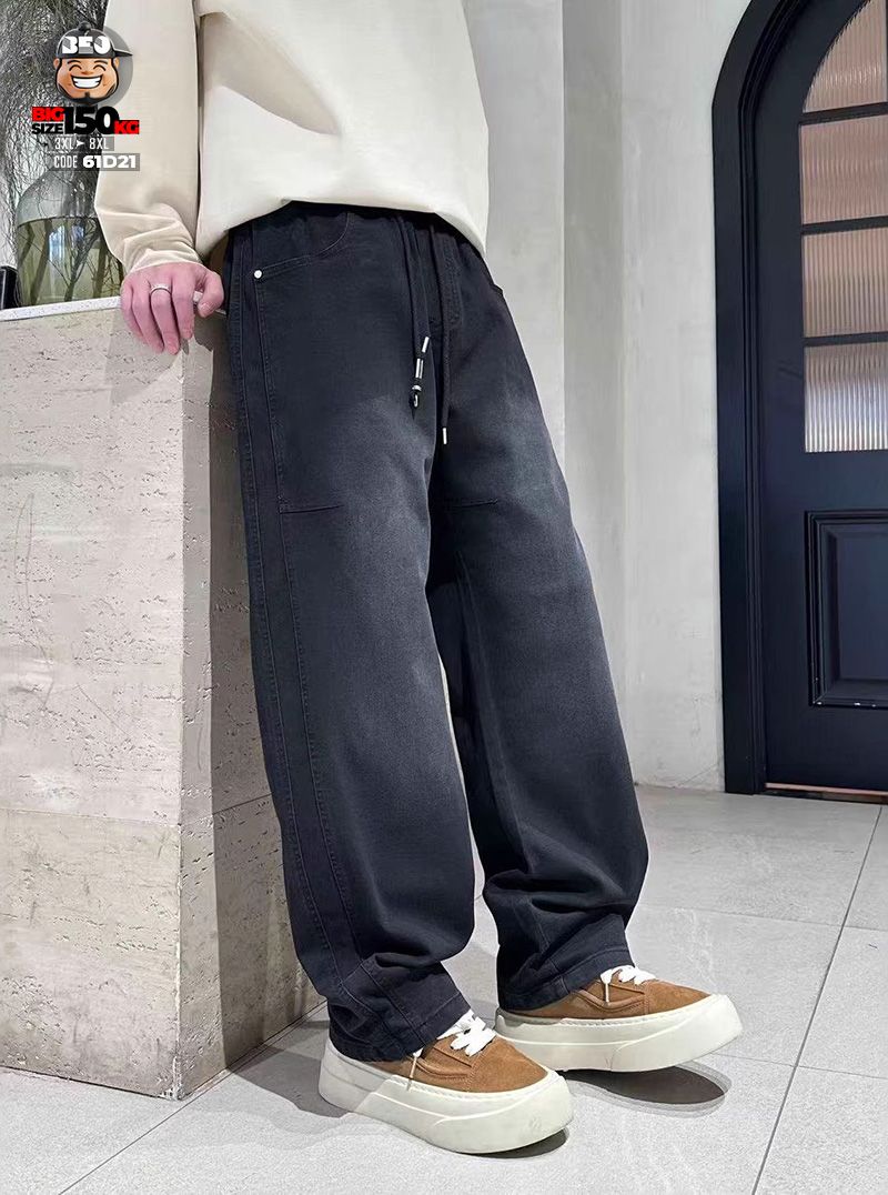 Quần dài jean thun ống suông wax khói rộng đùi chỉ nổi