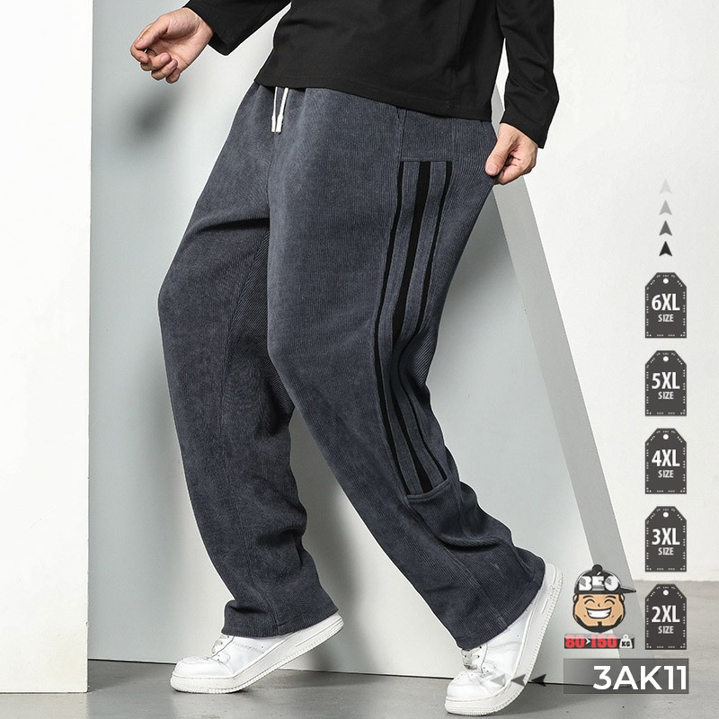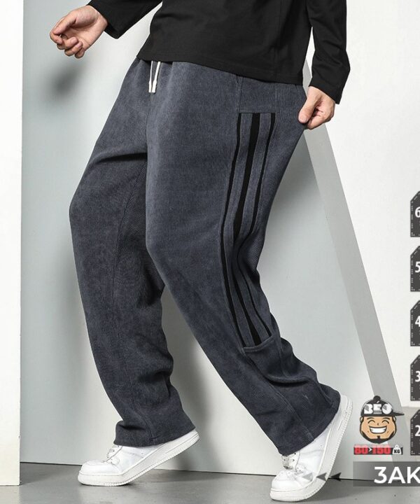 Mẫu baggy thun mang đến 1 form quần rộng rãi và thoáng mát với chất thun dày đứng form giúp phần chân luôn thon gọn và mang đến cảm giác suông chân hơn, tạo phong cách thể thao ấn tượng cho các chàng béo giúp cân đối cơ thể hơn khi mặc, họa tiết mảng sọc chân đơn giản trên nền vải nhung màu xám giúp che khuyết điểm tốt cũng như dễ phối đồ