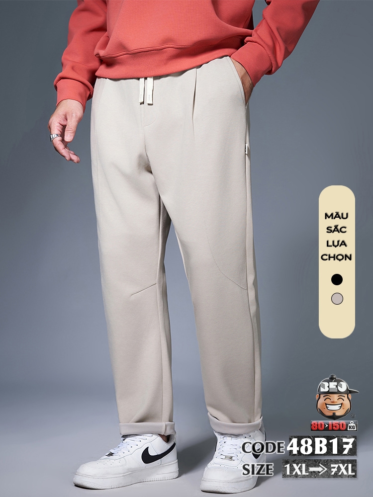 Quần dài jogger ông suông vải cotton chỉ nổi cong basic