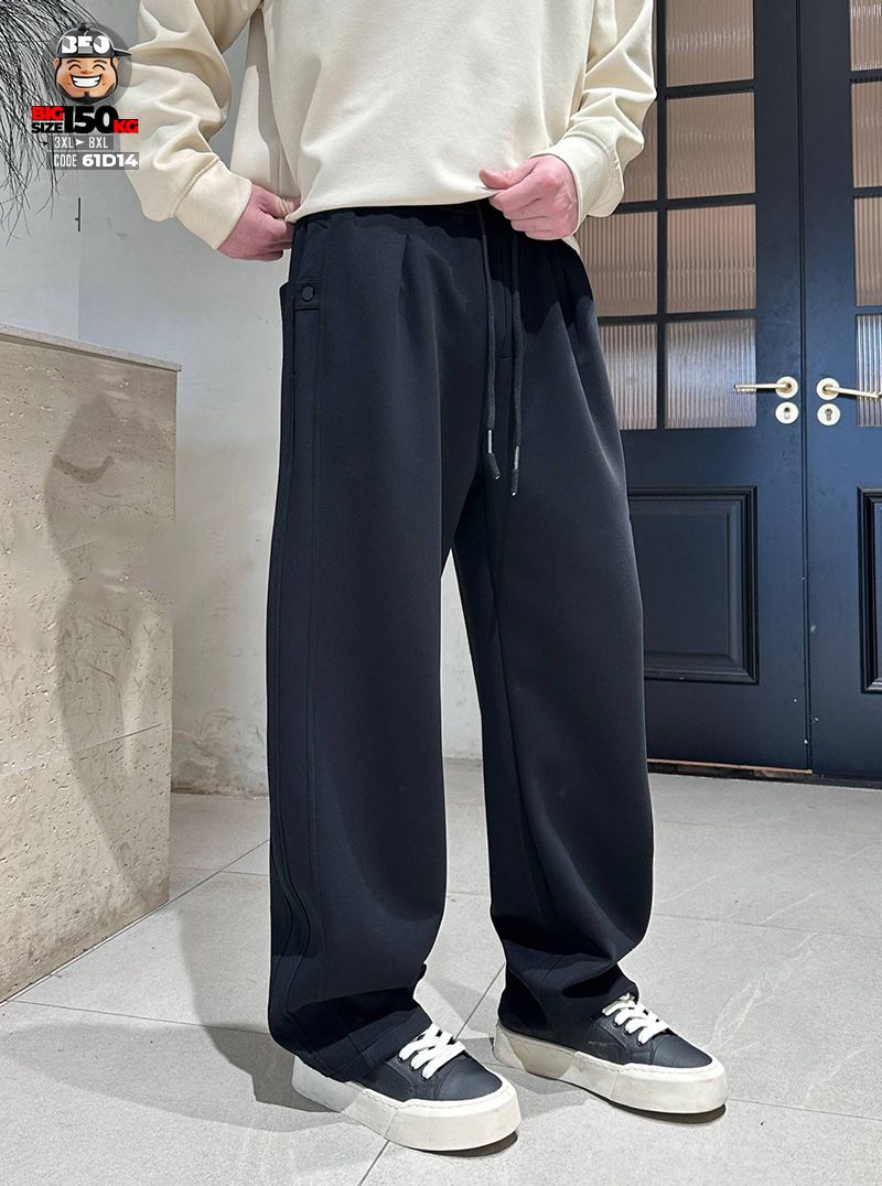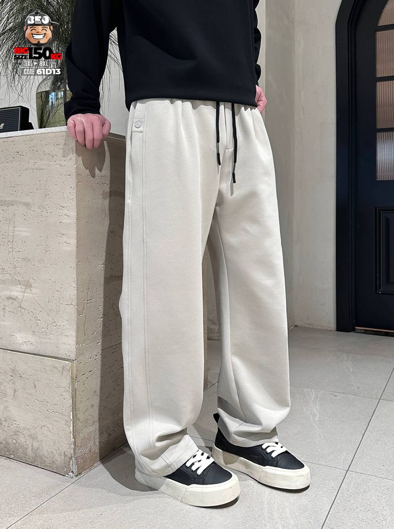 Quần dài jogger thun dầy dặn chỉ nối phối khuy nút ngang hông