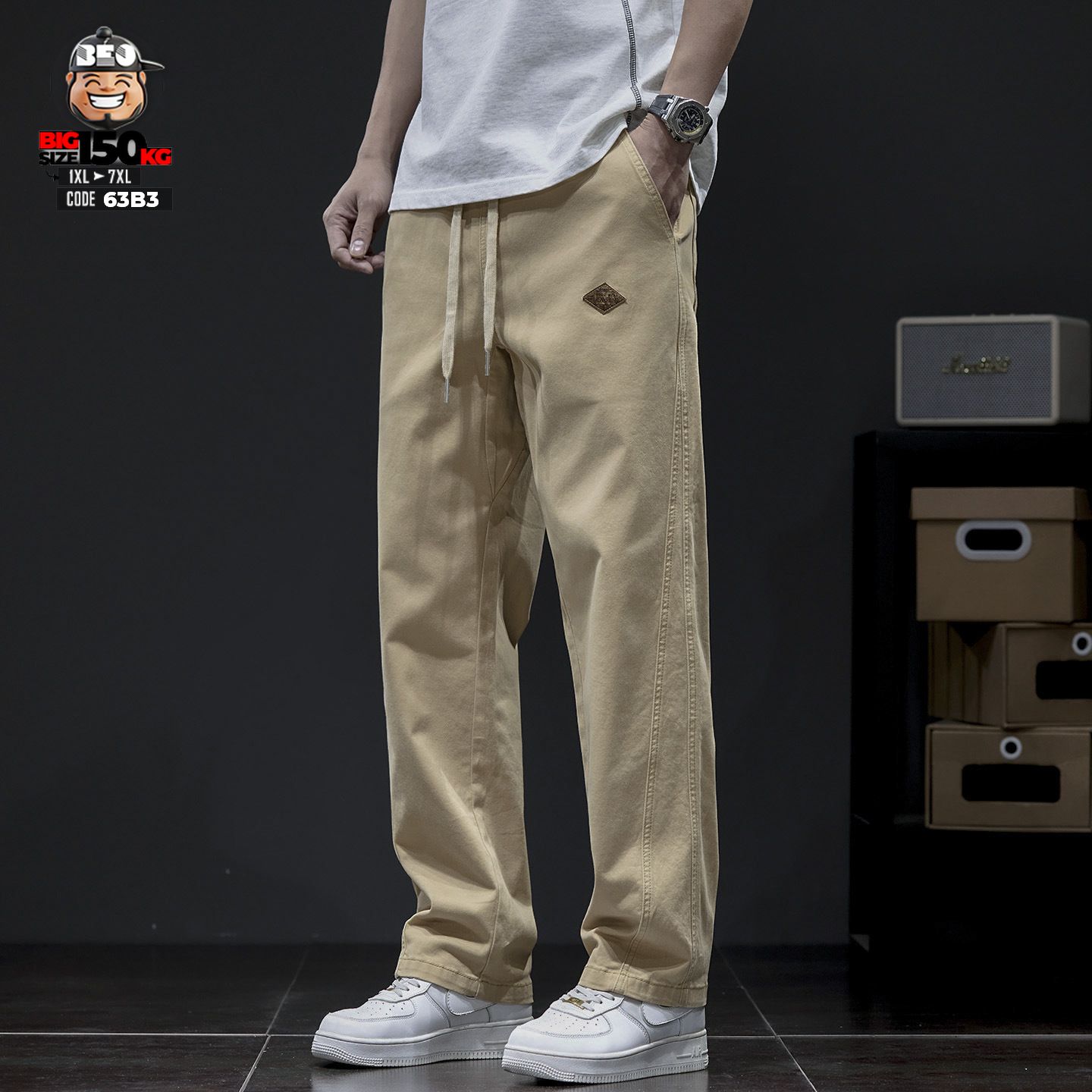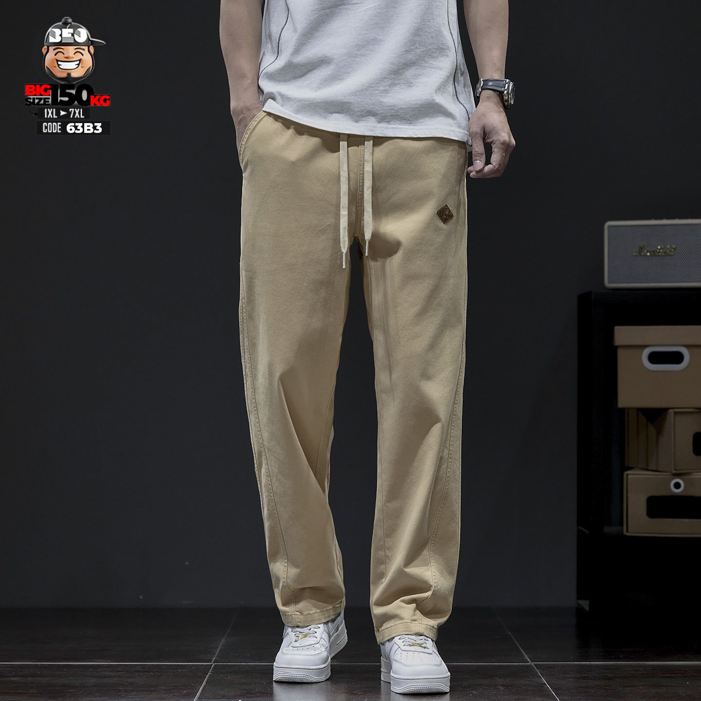 Quần dài Kaki cotton đũng lá liễu ống suông co giãn casual style