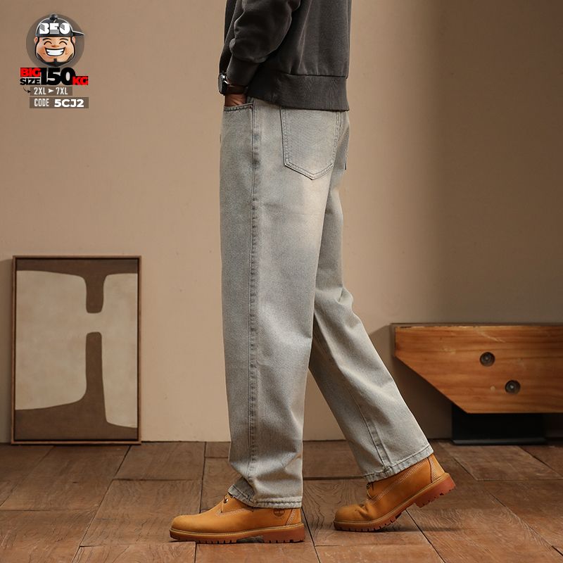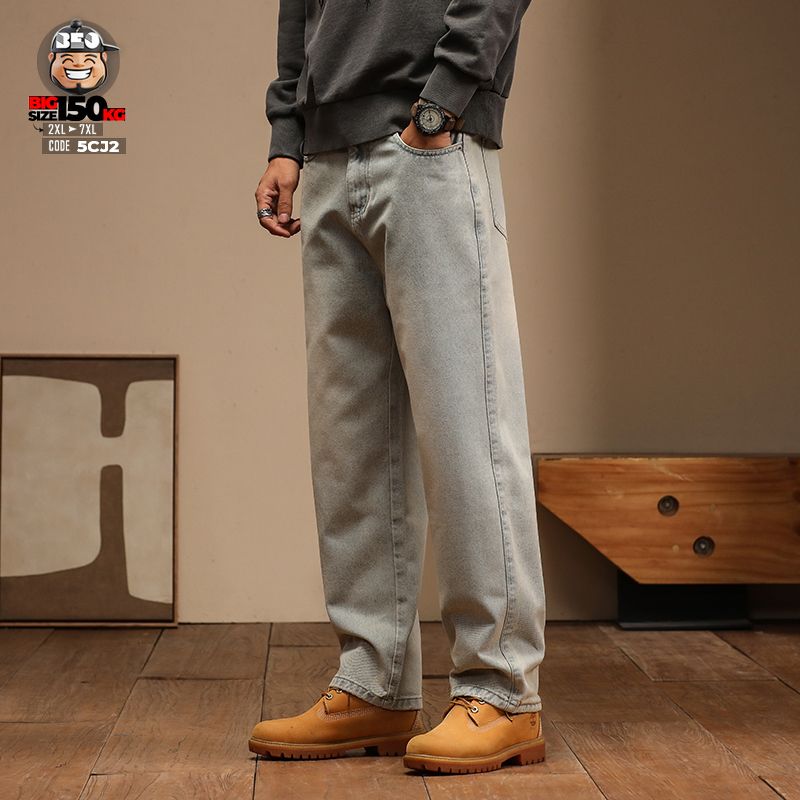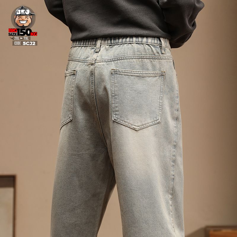 Quần Jean Jean Retro lưng kết hợp thun ống suông chất Denim Cotton Blend Co Giãn